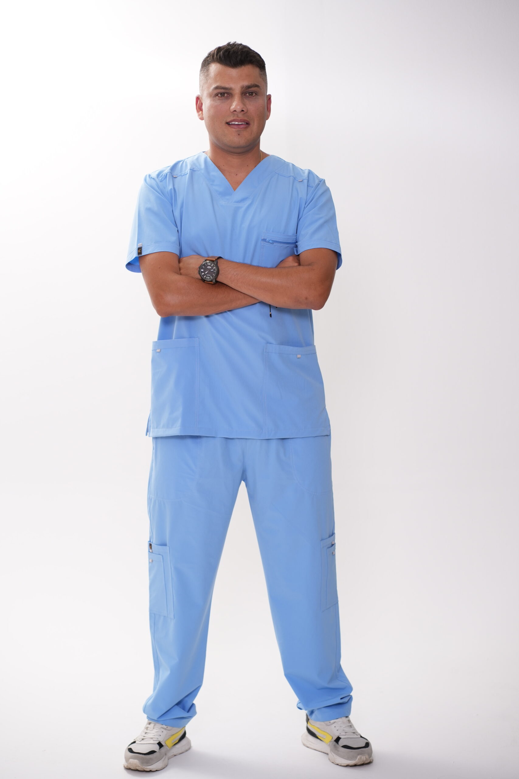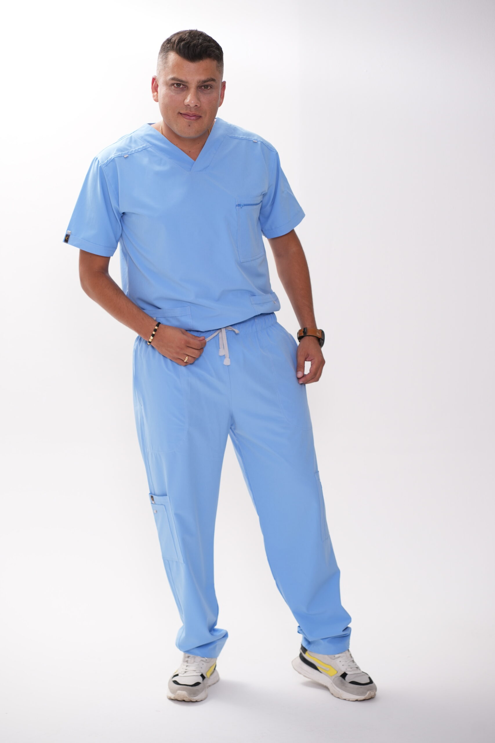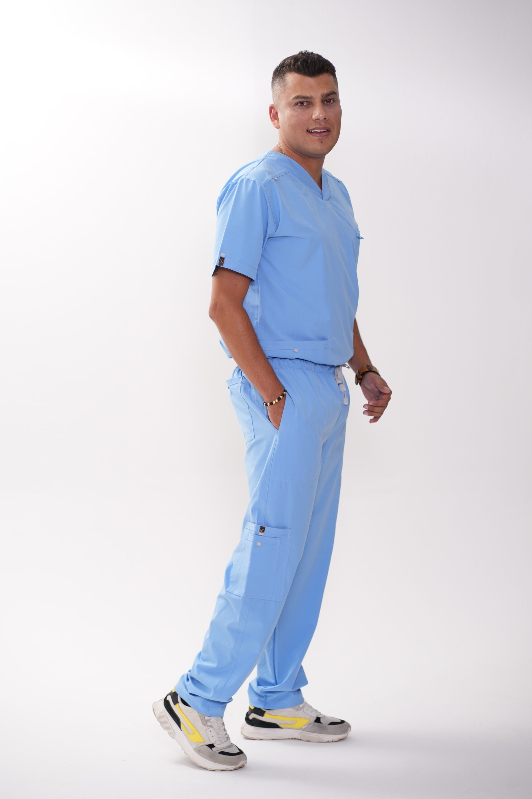 Uniforme en antifluido licrado premium, tela comoda, fresca y flexible, que se adapta a tus movimientos.
